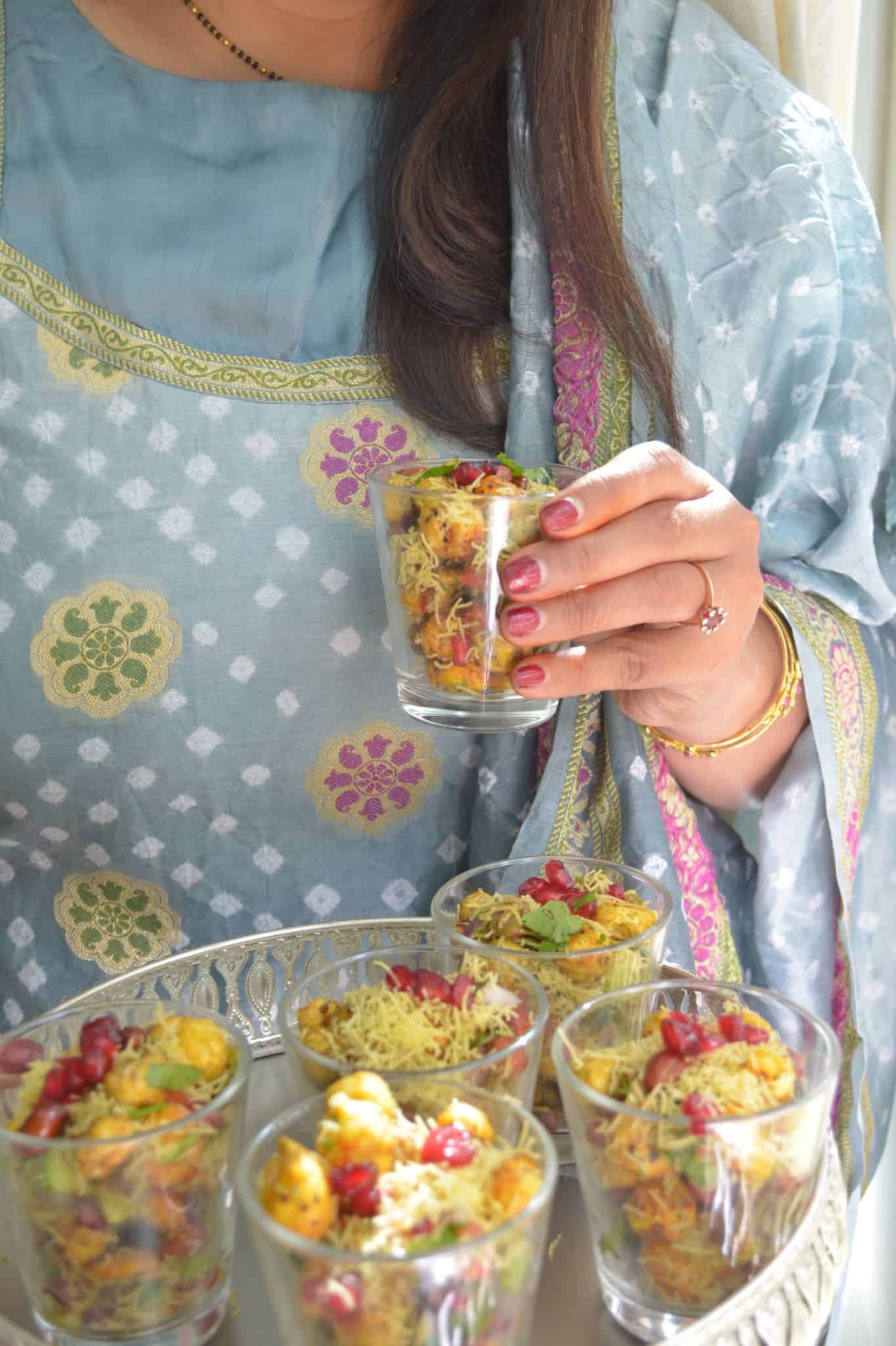 - Serve with a cup of masala chai. Contrast of warm drink & crunchy chaat is great.