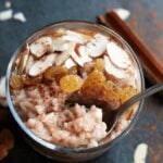 Rice Pudding, a delicious comfort dessert made with rice and coconut milk. Sweetened with dates and maple syrup and garnished with almonds and raisins. It' just simply yum. Super easy to make in the Instant Pot, just dump-set-go. Vegan. Gluten-Free. Video Recipe.