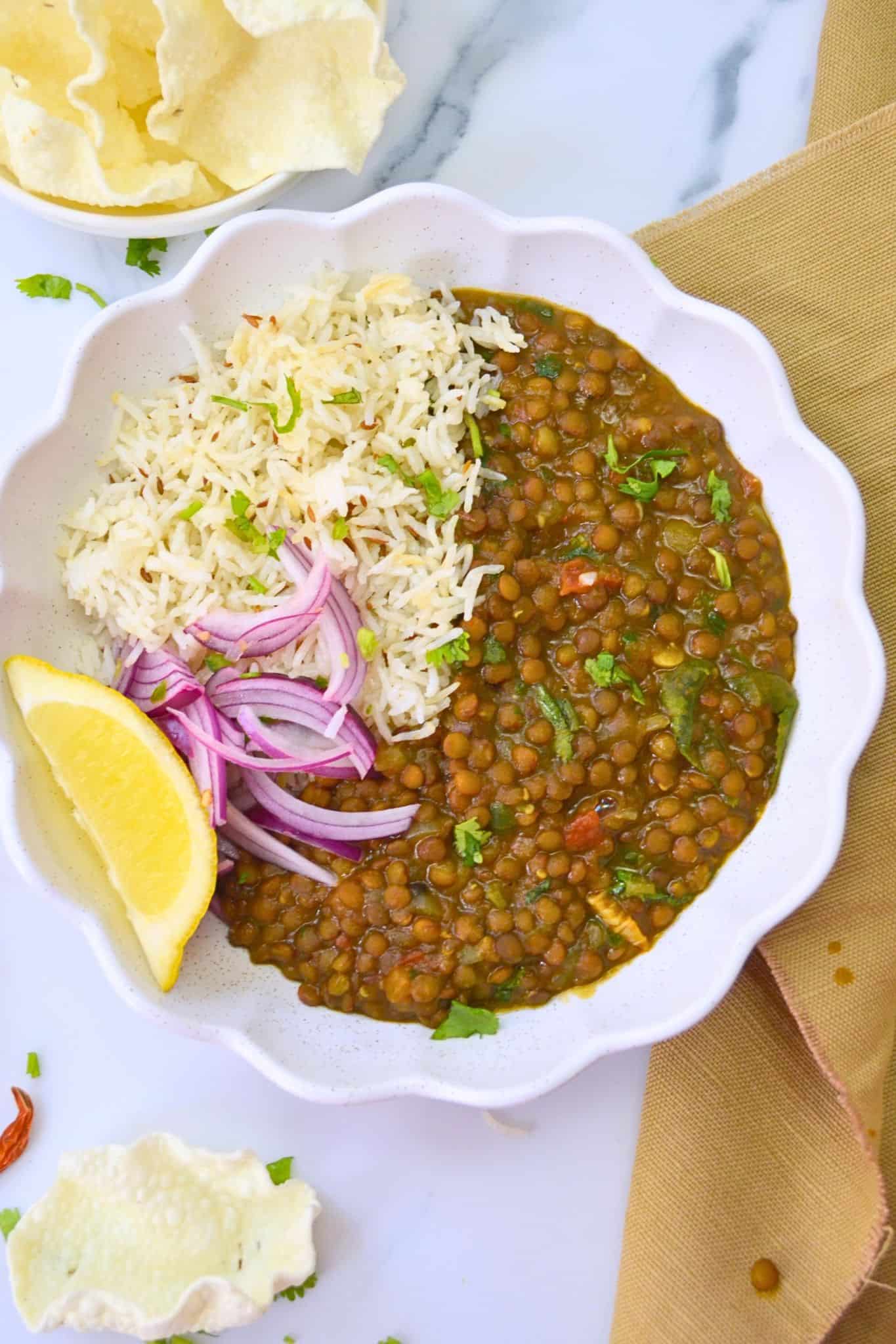 I still call this lenti as "kabutar waali dal" or "pigeon lentil" as the local grocery stores in India would feed these to pigeons. Life itself comes full circle in a funny way and today, this same simple dal has earned a special place in my kitchen, sitting right next to my beloved Dal Makhani. Made effortlessly in the Instant Pot, this dal tastes like something straight from a roadside dhaba. It's a smoky, creamy, delicacy that it is so comforting that you'll want seconds (and thirds!).