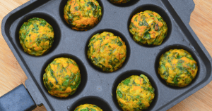 Add in the spinach fritters /pakoda in each cavity. Keep rotating it after every minute to get a nice round shape and even color on the pakoda. it will take around 8- 10 mins .
